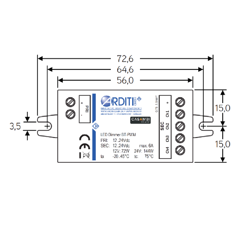 Das Casambi Modul DALI Einstellbar ist für bis zu 4 Kanälen (Farbmischung oder einzelne Lichtquellen) frei konfigurierbar. (CCT / RGB / RGBW / 1-4CH DALI)