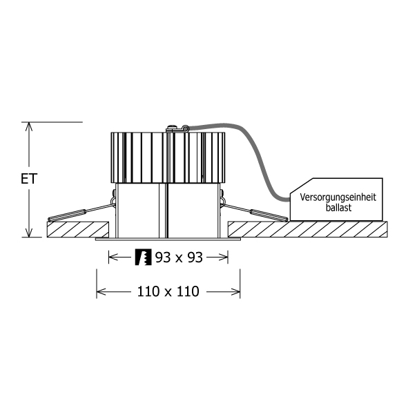 - Deckenausschnitt: 93x93mm